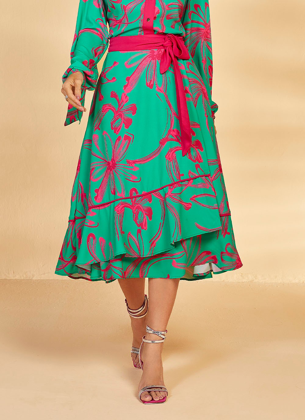 26852 SAIA CREPE EVASE C/ TRANSPASSE ESTAMPADA E VIVO ROSA 75CM
